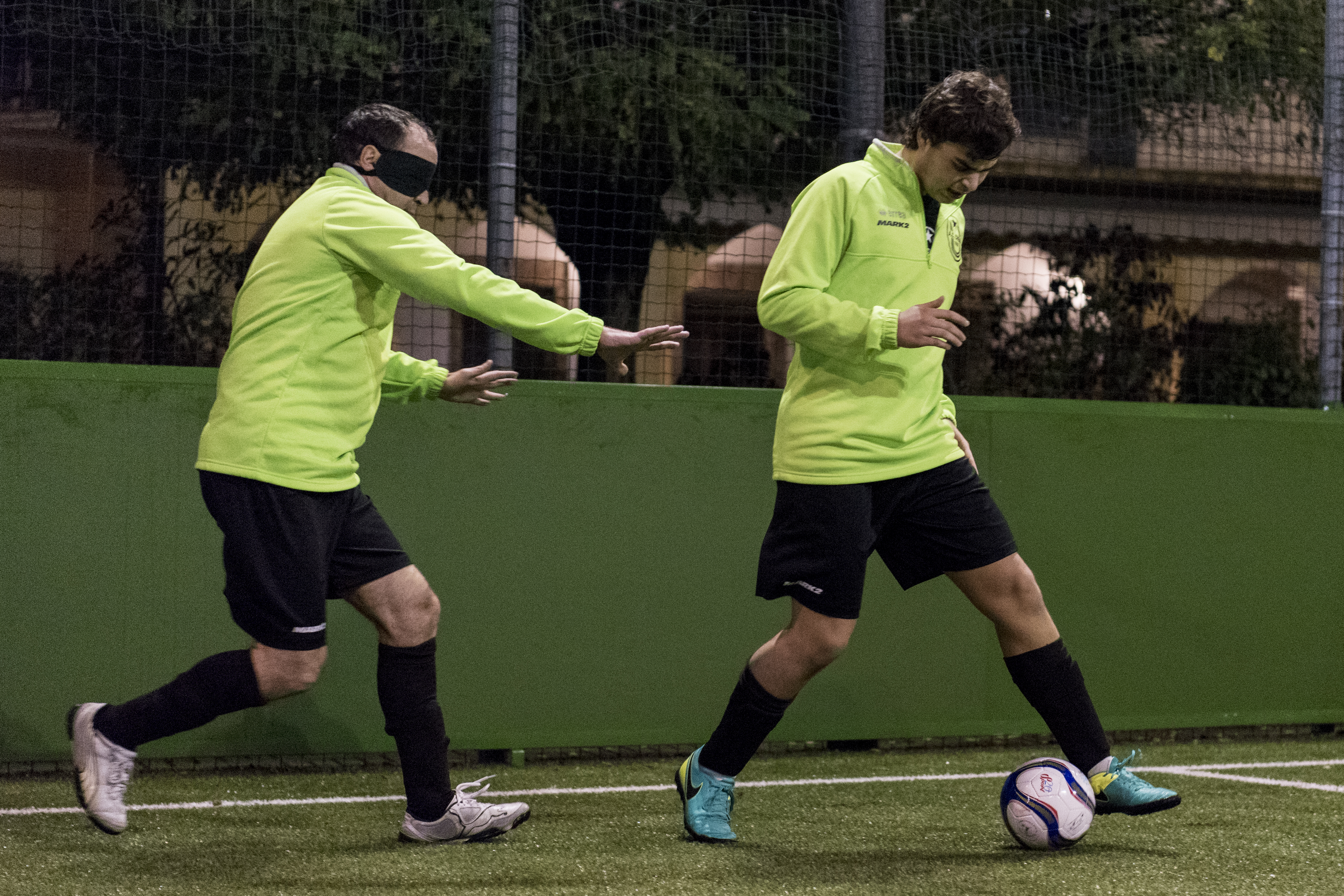 “Io in questo momento sto cercando di fare il traghettatore dei giocatori dalla realtà precedente a quella nuova. Sto tentando di costituire, insieme agli altri, il gruppo. In modo che si possa sviluppare e che possa camminare con le proprie gambe. E proseguire. A parte questo ruolo di collante e “trasferitore” delle conoscenze che ho acquisito negli ultimi quattro anni nella realtà del Crema Calcio, il ruolo prettamente tecnico che sto assumendo in questa squadra è quello di guida retro porta. I giocatori in campo, per regolamento, possono essere guidati vocalmente da un vedente in ciascuno dei tre terzi di campo nella sua lunghezza. Vicino alla porta, in difesa, c’è il portiere che può parlare quando la palla è in quella zona. Nella zona centrale del campo può parlare l’allenatore che sta fuori, a bordo campo. E nella fascia di attacco può parlare proprio la guida retro porta che sta dietro la porta avversaria. Io devo dare delle indicazioni tattiche e fare da riferimento sonoro per far capire proprio dov’è la porta. Per questo devo stare sempre al centro della porta, per poter dare un’indicazione precisa. Inoltre devo coordinare le azioni che ripartono con palla ferma, come calci d’angolo, punizioni. È un po’ come essere un direttore d’orchestra. Una funzione strategica. Bisogna cercare di comunicare con i giocatori con un linguaggio efficace. In modo da poter trasmettere le indicazioni in maniera essenziale. Trasmettere un messaggio importante per il gioco senza dilungarsi o creare confusione. La modalità va concordata con i giocatori. Si può stabilire un codice segreto in modo che gli avversari non possano capire cosa stai dicendo. Un po’ come i segni del baseball o quelli dei giocatori di briscola! In campo dovrebbe stabilirsi un rapporto molto intimo. Bisogna trovare dei motivi di comprensione e di sintonia. È difficile immaginare di far bene questo ruolo senza entrare in contatto con le caratteristiche dei singoli giocatori e del gruppo. Bisogna conoscerli bene. Capire se uno si trova in difficoltà contro un determinato giocatore o un determinato modo di giocare, per evitare che vada a sbattere contro un certo tipo di realtà che non lo aiuta. Occorre assecondare le inclinazioni personali di ciascuno. Una cosa che c’è sicuramente è che questi ragazzi hanno proprio voglia di giocare. Di riacquistare quello che forse hanno temuto di non poter più fare. Quando Francesco ha perso la vista quasi subito ha detto: Io voglio comunque giocare a pallone. Gli è stato detto che fino a dodici anni non si poteva fare, perché era troppo piccolo. Con il tempo noi quasi ci siamo dimenticati. Ma quando è arrivato a poco più di dodici anni ci ha detto: Allora? Dove andiamo a giocare a pallone? L’aveva tenuto lì. Ma non appena sono scattati i dodici anni ha chiesto che si mantenessero gli impegni presi! Certo, andare e venire dalla Liguria non era semplice. E non eravamo gli unici. C’erano anche persone da Castellanza o da Saronno che partivano con i figli e andavano in Liguria a giocare. Era l’unica realtà della zona. Avendo conosciuto un poco il mondo del calcio non vedente in Italia, io ho tentato di trovare una spiegazione per questa lacuna. E quello che posso dire è che non c’è il giusto modo di impostare l’agonismo in modo che non diventi rabbia o rivalsa dalle frustrazioni. Quello che succede nel campionato italiano è che difficilmente si trovano situazioni amichevoli o che non siano solo formalmente amichevoli. Succede che c’è uno che si è fatto male una volta e da allora ha paura di farsi male e non viene più a giocare. E questa esagerazione dell’idea agonistica magari porta la gente a creare occasioni di rischio o di tensione nervosa. Il piacere di giocare può finire in secondo piano. C’è anche una scarsa preparazione. I ragazzi che hanno provato a giocare a calcio non hanno mai avuto il tempo e le risorse necessarie per diventare degli atleti. E se uno ha difficoltà a stare in equilibrio, è chiaro che se qualcuno lo tocca casca e si fa male. E si fa male perché non ha il fisico, la corporatura, la struttura, l’abitudine. Ogni volta che dicevo che Francesco voleva giocare a calcio, i cosiddetti addetti ai lavori commentavano: Eh, ma è pericoloso. È uno sport pericoloso. A me è sempre sembrato molto strano. Francesco, ad esempio, va sugli sci. E se casca, casca. Come chiunque, non è diverso. Se si cade sul campo di gioco ci si farà un livido o un graffio al ginocchio, come succedeva a me quand’ero bambino, come capita a tutti i ragazzini. Bisogna tenere presente però che i familiari, i care givers, tutti coloro che stanno intorno al mondo dei disabili, sono spesso persone traumatizzate. Io noto che, rispetto a come vedo io la questione, spesso ci sono eccessi di protezione. Essere in squadra con mio figlio è una cosa bellissima perché riesco a seguire quello che fa. È ovvio, qualche volta cerco di stare un po’ in disparte. Ci sono aspetti positivi e negativi. Che io riesca a stargli dietro per lui è anche un vantaggio perché può fare riferimento a una persona di fiducia. Anche dal punto di vista dei trasporti, per esempio. Se c’è da andare a fare una cosa, Francesco non deve alzare il telefono e chiamare l’accompagnatore. Tra noi avviene automaticamente, quando ci parliamo.”