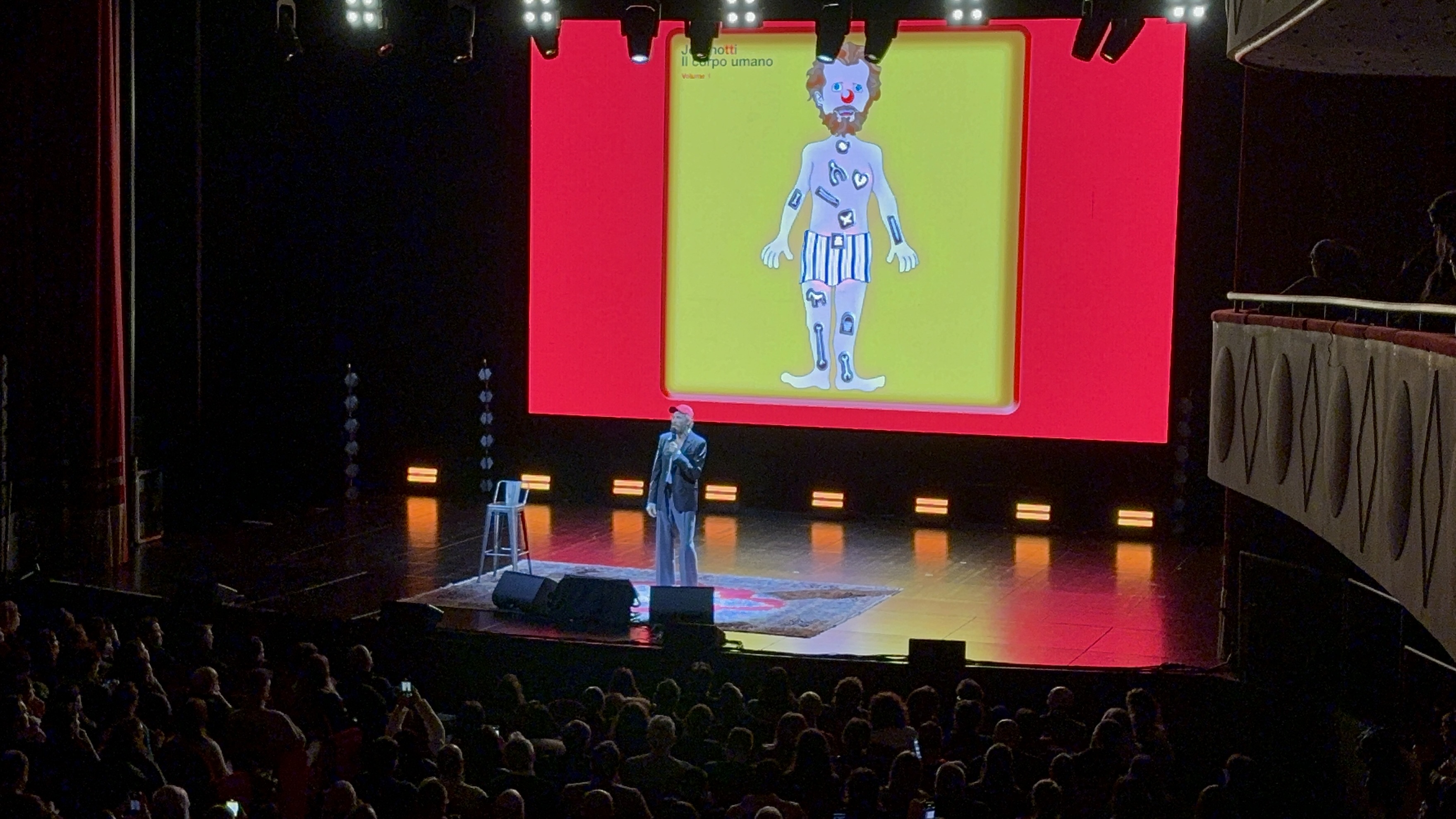 Jova parla a cuore aperto, in un racconto che si alterna tra immagini, parole, aneddoti, musica e che prevede anche uno spazio di domande per rispondere alle curiosità raccolte ore prima sui social. Una realtà che l’artista non ignora e che spesso ha utilizzato anche durante la convalescenza. Realtà di cui dice di aver incontrato alcuni esponenti e a cui guarda con interesse: «E’ un mondo che si muove, di creativi che si sbattono per le loro idee». La domanda che in molti continuano a farsi – anche a giudicare di quanto visto e presentato in un’ora abbondante di one-man-show al Lirico – proviene invece dall’altro mondo, quello della «carta stampata». Ci si chiede dove Jova – 58 anni, di cui oltre 35 di carriera – trovi la forza di andare avanti, distribuire musica, gioia e divertimento, sprizzare entusiasmo come un “giovanotto”, alla luce di quanto gli è accaduto sul personale e di quello che avviene nel mondo là fuori: «Sia i motivatori che i profeti di sventura alla fine raccontano solo una parte della realtà. Non si tratta di essere ottimisti. Si tratta di guardare la realtà e la realtà è stupefacente. E il bene trionferà», risponde lui.