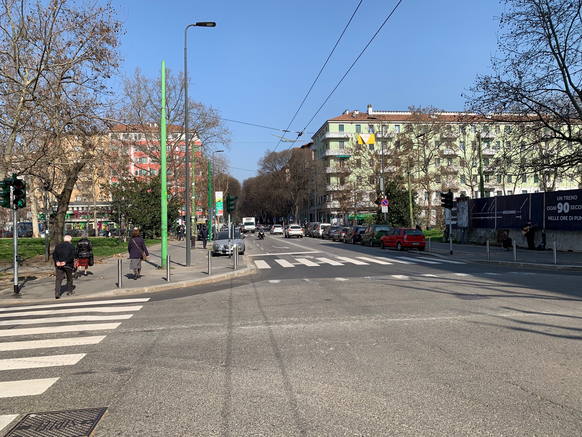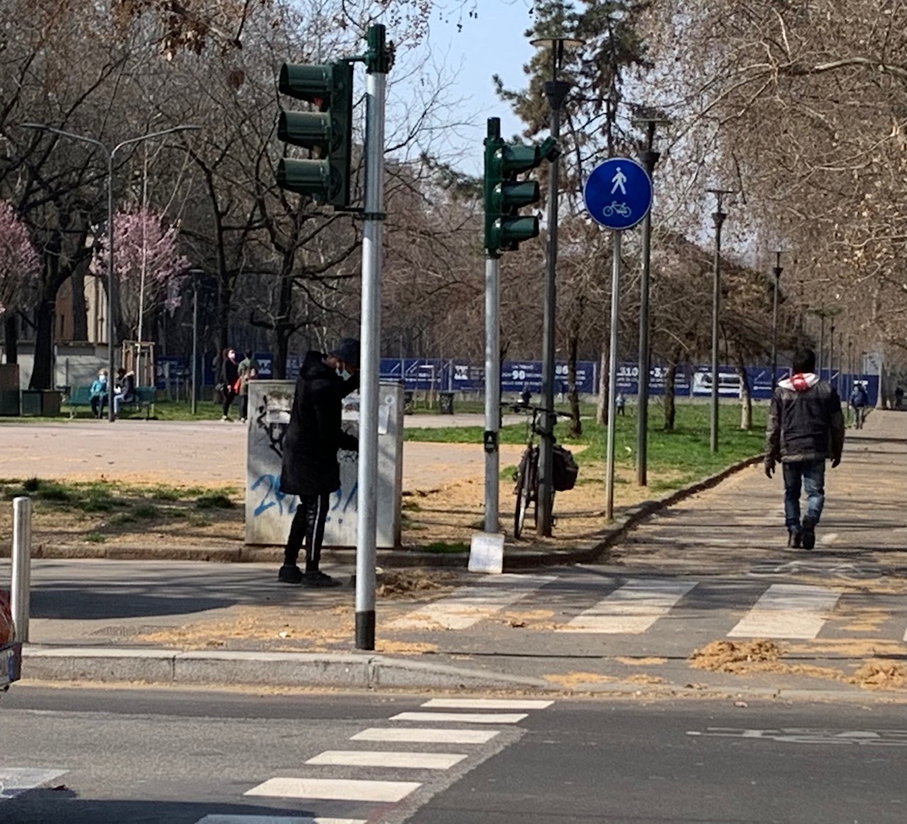 E così una mattina luminosa tinge la città meneghina di queste nuove tinte. Si colora anche la zona est del capoluogo lombardo. È un quartiere tranquillo, costellato dai cantieri della linea 4 della metropolitana, abituato ad essere svegliato dal rombo dei motori degli aerei del vicino aeroporto di Linate. Ma con la pandemia di Covid-19 in piena terza ondata le sveglie sono addirittura due: le sirene delle ambulanze e la relativa quiete che si sente nelle strade e sui marciapiedi. All’inizio sembra che ci siano poche persone in giro, come se la maggiore libertà della zona gialla fosse già stata dimenticata. Sono soprattutto le persone anziane coloro che si notano maggiormente. Molti tengono un carrello o un sacchetto della spesa. Non sembrano in affanno. Non c’è nulla che possa ricordare le corse ai supermercati di un anno prima. Però si nota subito qualcosa nei loro sguardi: stanchezza, mancanza di luce. Eppure mentre si dirigono verso le proprie case o i negozi per fare acquisti nessuna di loro si mostra in angoscia, ma cerca di trovare un pizzico di serenità nei gesti di una quotidianità che si tenta di tenere viva in qualche modo.