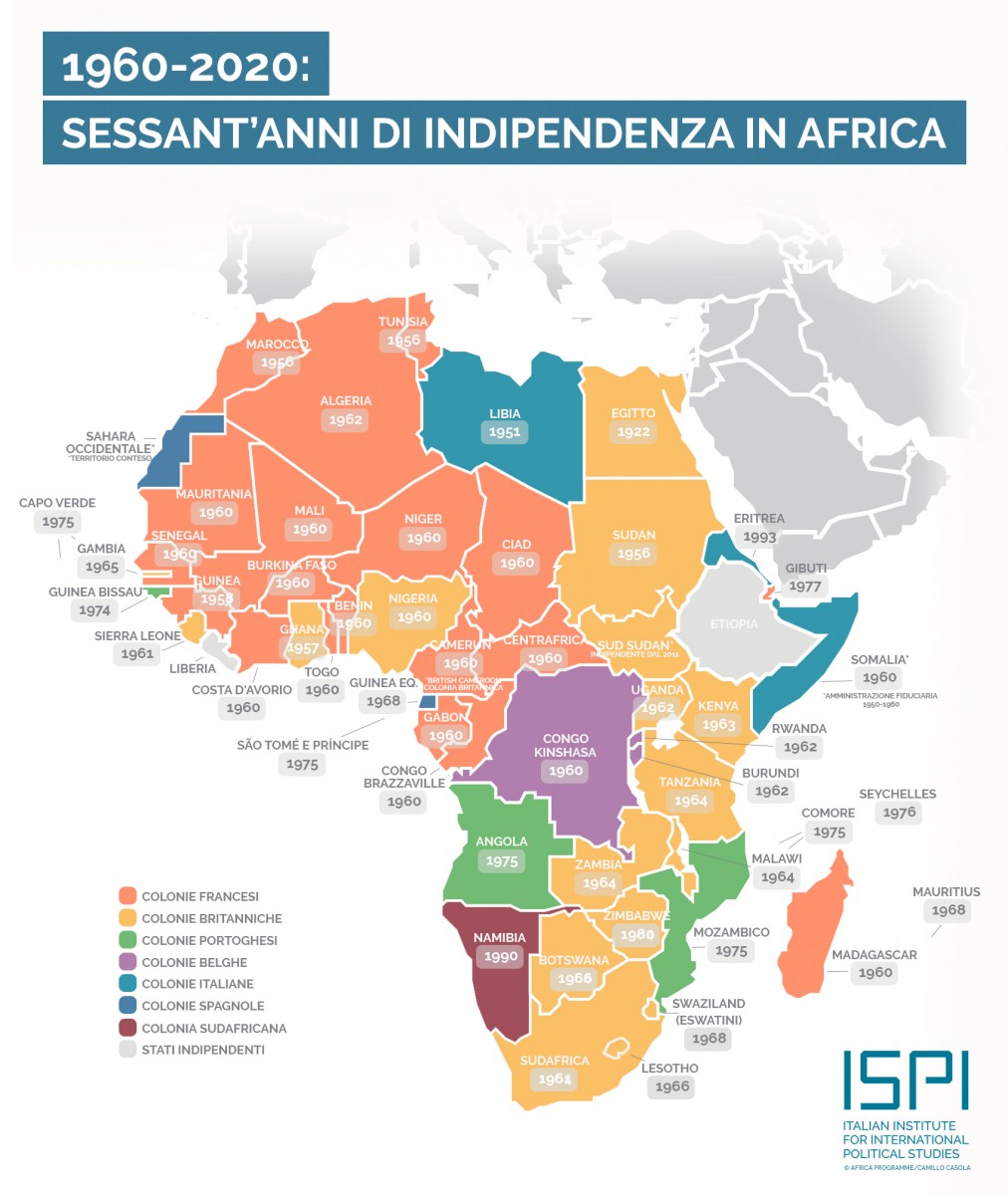 Come evidenzia un report dell’Ispi, il 2020 scandisce il sessantesimo anniversario da quello che venne definito “l’anno dell’Africa”, il momento in cui diversi Paesi subsahariani ottennero formalmente la propria indipendenza dalle colonie europee. Era il 1960, il dominio italiano cessava in Somalia.