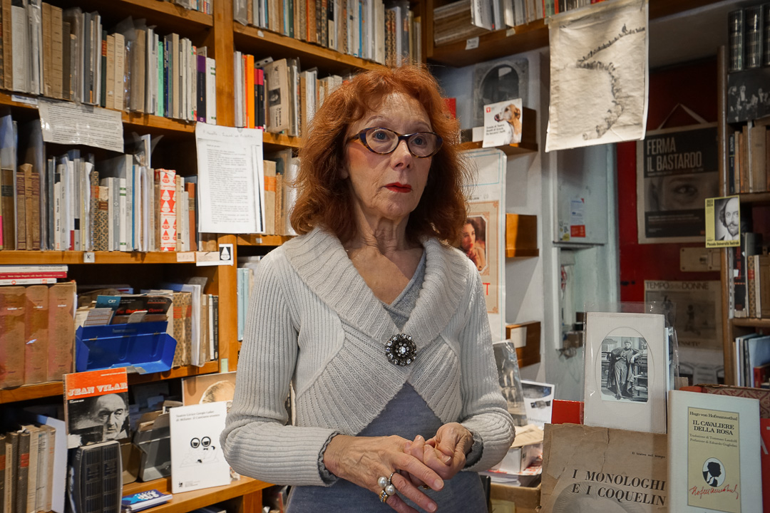Maria Cristina Spigaglia ha aperto la sua attività più di 45 anni fa, nel 1979. «Sembra avveniristico ma oggi non si potrebbe fare. Io volevo qualcosa di speciale: non intendevo avere anche il banco novità, come mi consigliavano tutti. Ero molto determinata e ho avuto ragione». Così è nata la Libreria dello spettacolo. Immersa tra libri e copioni, nuovi e vecchi, racconta di come sia cambiato il suo lavoro nel tempo: «Una volta non era così, è proprio diverso il mondo. Fino agli anni Novanta rendeva e avevo anche la Rai come cliente. La Rai acquistava dizionari di cinema e regali aziendali. Ora non più. Una volta compravo dodici copie di un’edizione e la tredicesima era in omaggio, ora ne compro una sola. Anche la borghesia medio-alta è in affanno economico e i clienti sono diminuiti».