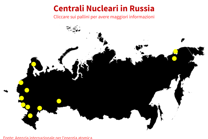 In Russia sono attivi, ad oggi, 38 reattori nucleari, divisi in 11 centrali. Altri tre sono attualmente in costruzione, mentre una decina è stata ufficialmente chiusa e altri nove sono in fase di progettazione. Qui potete vedere la nostra infografica. L’energia nucleare ha generato, nel 2021, il 19 per cento dell’elettricità consumata dalla Russia. L’azienda pubblica Rosatom, leader del settore nella Federazione, ha in piano di coprire il 45-50 per cento del fabbisogno energetico del Paese entro il 2050, per poi arrivare al 70-80 per cento entro fine secolo. Per raggiungere queste cifre, Rosatom punta sul progetto Proryv (svolta), incentrato su reattori capaci di eliminare la produzione di scorie radioattive. Oltre ai progetti in corso, a partire dal 2000 la Russia ha aumentato la capacità produttiva dei suoi reattori più vecchi, opportunamente ammodernati e messi in sicurezza . A partire dagli Anni ’90, la produzione è aumentata del 25-30 per cento. Altra risorsa fondamentale per la Russia è l’uranio. I principali giacimenti del Paese sono quattro, così suddivisi e qui potete avere una info-grafica interattiva: