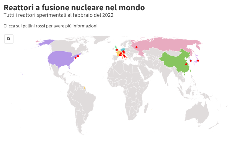 - ITER (International Thermonuclear Experimental Reactor). Si tratta, al momento, del progetto più ambizioso al mondo, che entrerà in funzione nel 2035. È situato nella Francia del Sud, presso Cadarache, e vede la collaborazione di 35 Paesi: il fine è la costruzione del più grande tokamak del mondo, un dispositivo di fusione magnetica pensato per provare la fattibilità della fusione come una fonte di energia basata sugli stessi principi che alimentano il Sole e le stelle. Tra i principali Paesi membri spiccano Cina, Unione Europea, India, Giappone, Corea, Russia e Stati Uniti d’America. Ad oggi le imprese italiane hanno vinto oltre 1,8 miliardi di euro di commesse, più del 50% del valore totale del totale per ITER (escluse quelle relative alle strutture edili) .