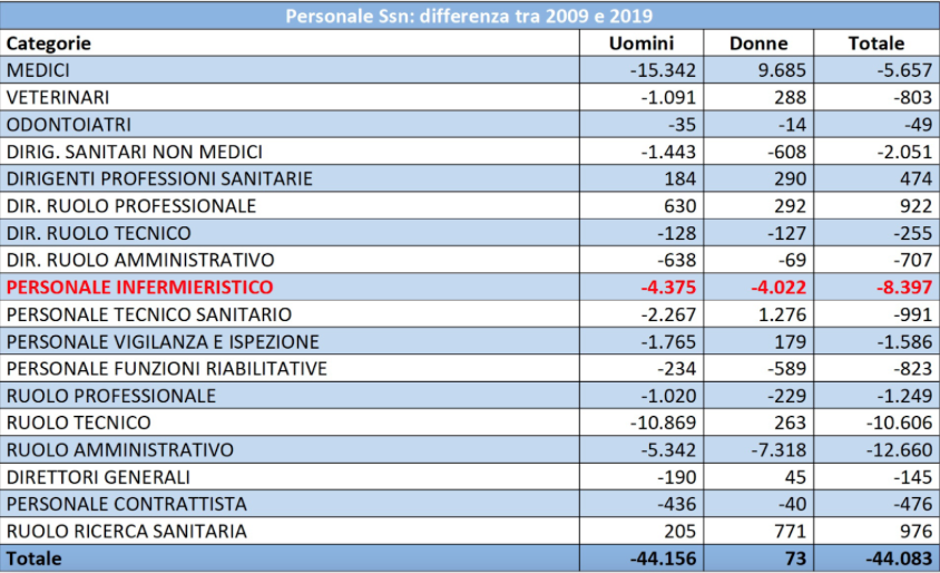 Questa tendenza prosegue ormai da parecchio tempo: è ciò che ci indica il grafico sottostante, che evidenzia un calo costante nel numero di impiegati nel Sistema sanitario nazionale già nello scorso decennio.