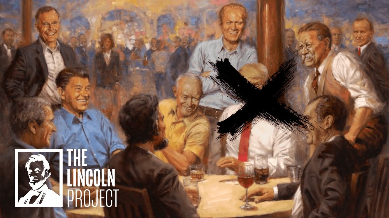 Stavolta toccherà partire da un’immagine; più di preciso, da un dipinto. Racchiusi da una cornice, alcuni signori in primo piano ridono e bevono attorno ad un tavolo. L’atmosfera rarefatta sullo sfondo si rischiara man mano fino ad arrivare alle loro sagome. La prossemica e le espressioni del viso lasciano intendere l’esistenza, tra di loro, di un rapporto di stretta, distesa vicinanza.Facendo caso ai volti si può riconoscere l’identità dei protagonisti: George H. Bush, suo figlio George W. Bush, Ronald Reagan, Richard Nixon, Theodore Roosevelt, Dwight Eisenhower, Gerald Ford e – più in disparte – Calvin Coolidge, Warren Harding e Herbert Hoover. In mezzo a loro – ai presidenti repubblicani del ventesimo e ventunesimo secolo – siede Donald Trump, proprio di fronte ad Abraham Lincoln. Opera di un poco conosciuto pittore e dono di un deputato all’attuale inquilino dello Studio Ovale, al quadro, esposto in una sala della Casa Bianca, in molti si sono divertiti a fare le pulci, tra i democratici, ma non solo. Persino tra i repubblicani, qualcuno metterebbe volentieri una croce sopra – non soltanto in senso figurato – ad un ritratto raffigurante un egotico miliardario razzista a tu per tu col padre della patria uscito vittorioso dalla Guerra civile contro i confederati.