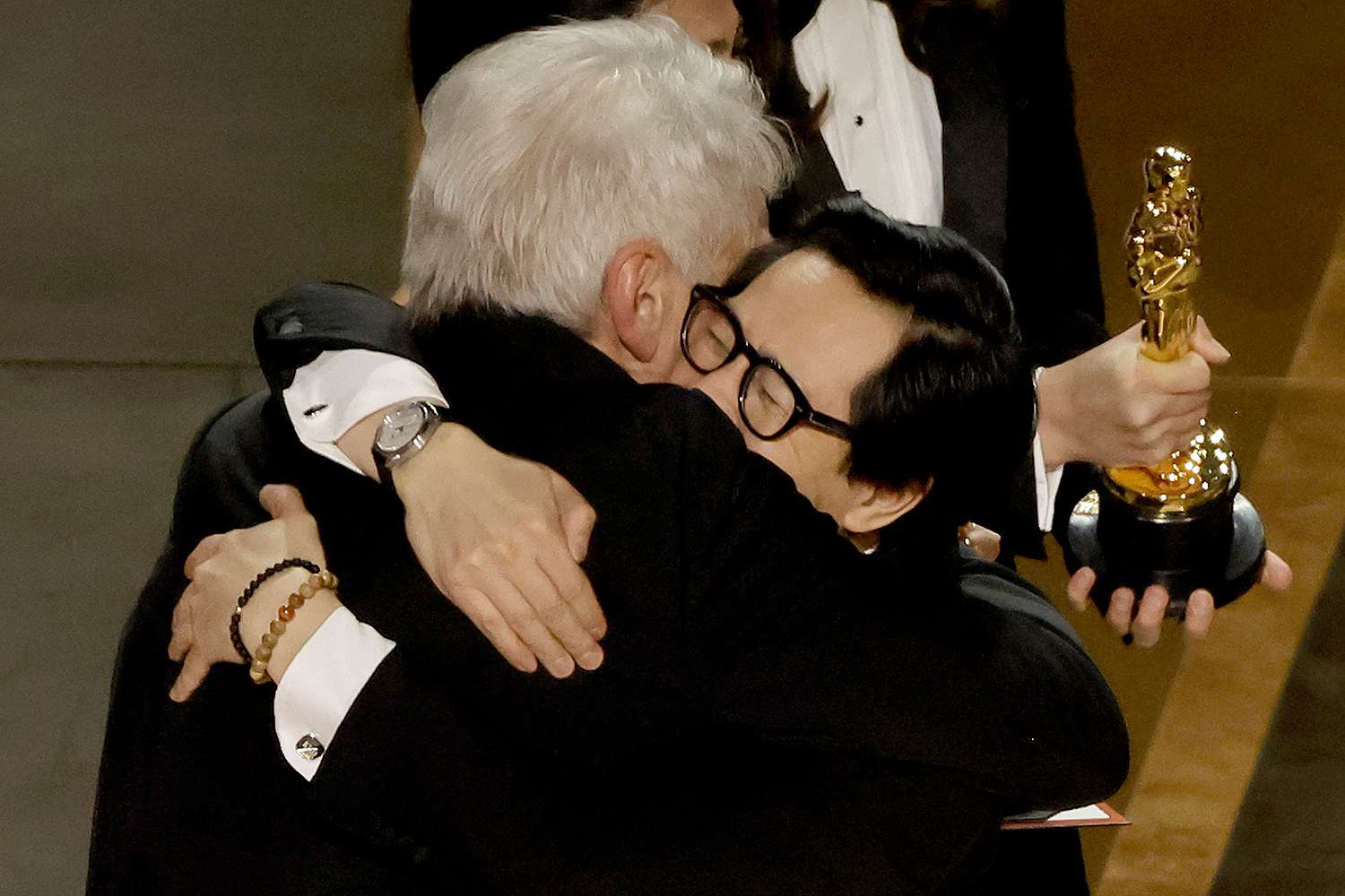 In uno dei tanti multiversi Ke Huy Quan non ha mai lasciato Saigon e lavora in un ristorante vietnamita. In un altro universo, invece, non ha mai ottenuto il visto dagli Stati Uniti e ha passato dieci anni nel campo rifugiati di Hong Kong. C’è poi anche un Quan che dopo i Goonies ha visto esplodere la propria carriera e ha all’attivo più di cinquanta film e almeno quattro candidature agli Oscar. Il nostro multiverso però è il più poetico e ci ha regalato l’immagine simbolo di questa edizione. Ke Huy Quan è sul palco con tutto il cast, dopo aver ritirato il premio come miglior attore non protagonista e aver salutato la mamma che lo guarda da casa: Everything Everywhere All at Once ha appena vinto sette premi, tra cui miglior film. Ad annunciare la statuetta più importante non è stato un attore qualunque, ma Harrison Ford. Ke, quando lo vede salire sul palco, torna il bambino di dodici anni che nel 1984 viveva il sogno di recitare al fianco di Indiana Jones ne Il tempio maledetto. Quell’abbraccio tra i due durante i festeggiamenti segna la fine di un cerchio. Sì, forse il multiverso dove eravamo incastrati ieri era il migliore possibile. Tutto, ovunque e allo stesso momento.