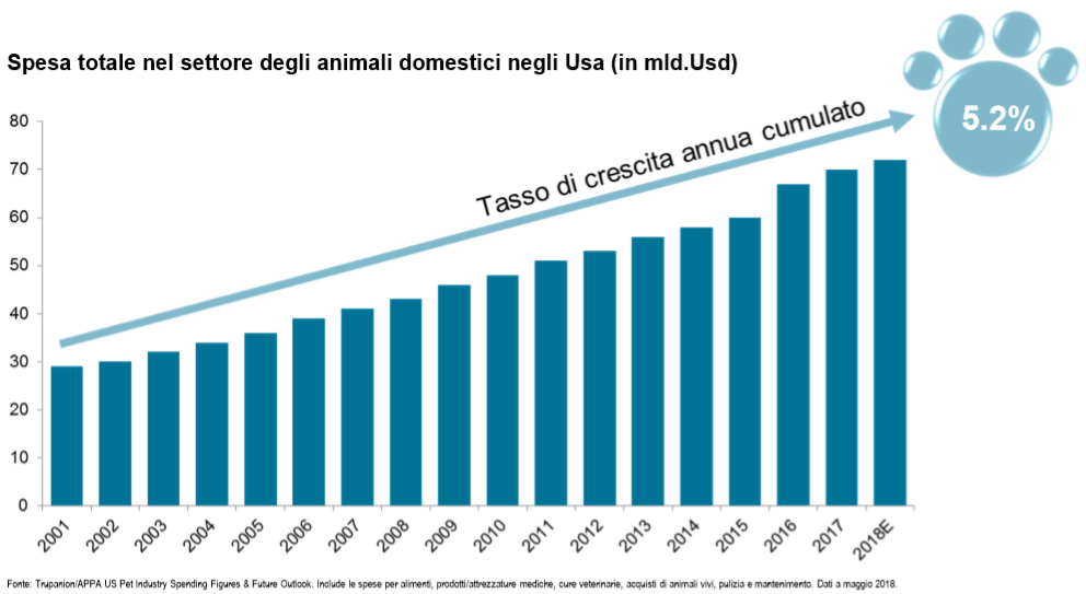 Secondo diversi analisti le potenzialità di crescita complessive del mercato degli animali domestici è notevole. Edge by Ascential prevede che la Pet Care Industry raggiungerà un valore di 281 Mld di dollari entro il 2023 solo nel Nord America. Sarà invece l’Asia, nel prossimo decennio, a profilarsi come il mercato con più rapida espansione (+37%), secondo questo studio, raggiungendo il valore di 384 Mld di dollari. A conferma della vivacità del mercato legato alla Pet Industry, un ETF (Exchange Traded Fund) composto da venti titoli collegati a questo settore è stato lanciato dalla società di investimento ProShare. Il mercato dei farmaci per animali domestici, in particolare, si prospetta sempre più competitivo, con vendite che nel 2018 hanno raggiunto i 9 Mld di dollari (+8,5% rispetto al 2017). Inoltre Walmart, Petco e Chewy hanno rafforzato la loro presenza nel mercato veterinario, instaurando collaborazioni con nuovi partner globali tra cui VitalPet e VetnCare.