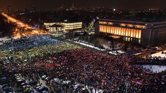 Striscioni, bandiere e cori. Piata Victoriei, che abbraccia il palazzo del governo, sembra l’accampamento disordinato dei fan prima di un concerto. In migliaia da giorni chiedono la testa, politicamente parlando, del primo ministro socialdemocratico Sorin Grindeanu. E non sono intenzionati a mollare di un centimetro adesso che si sentono a un passo dalla vittoria, dopo aver sfidato il freddo e le cariche della polizia e attirato l’attenzione dei media di tutto il mondo. Un primo successo sono state le dimissioni del ministro della Giustizia Florin Iordache, ma a loro non basta. Oltre al ritiro del “decreto salva-corrotti”, presentato con urgenza dal governo di Bucarest il 31 gennaio, anche l’approvazione di lunedì sera del referendum per una nuova legge contro la corruzione da parte del Parlamento pare non poter salvare il neonato esecutivo, che ha ricevuto la fiducia delle Camere lo scorso 4 gennaio.