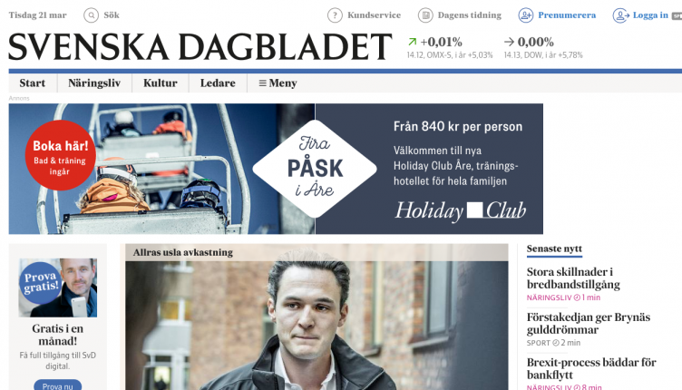 Circa quattro anni fa Svenska Dagbladet, uno dei maggiori quotidiani svedesi, era in caduta libera a causa delle vendite non esaltanti e dei magri introiti garantiti dalla versione digitale. Quando Fredric Káren è diventato direttorere, nel 2013, il board e la società madre, la conglomerata scandinava Schibsted Group, hanno deciso di fare di tutto per mettere al sicuro il futuro del giornale. Da allora, la redazione di SvD è tornata a crescere grazie a una nuova mentalità digital-first, a un cospicuo investimento in tecnologia, ma soprattutto grazie a un algoritmo che gestisce le news.